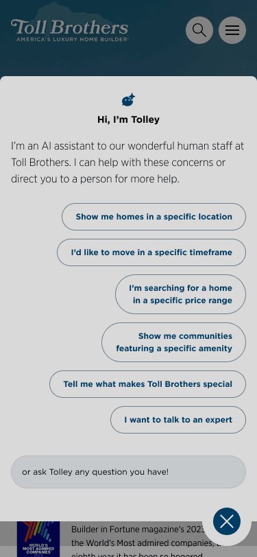 I highlight 3 Toll Brothers projects with visual examples in mobile and desktop viewports.